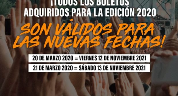 Los boletos que se compraron para asistir el día 20 de Marzo del 2020 se podrán utilizar para el viernes 12 de noviembre, mientras que los boletos que se compraron para el 21 de marzo garantizan tu entrada para el sábado 13 de noviembre.
