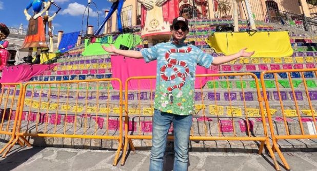 Por la tarde el joven viajero, impactó a sus seguidores con las publicaciones en sus historias que ya se encontraba en Santiago, admirando la Plaza Principal, los paisajes y la arquitectura que ofrece el municipio.