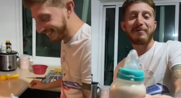 Fue un video que se subió a TikTok y en unos cuantos segundos se observa a Octavio Ocaña preparando un biberón. Se escucha la voz de Nerea quien lo cuestiona "¿ya estás practicando?".
