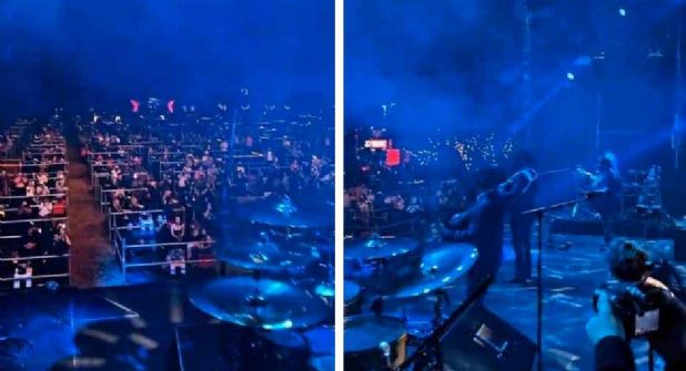 La banda decidió iniciar el concierto con la proyección de un vídeo con referencias a la pandemia de covid-19 y escenas de sus conciertos anteriores al covid.