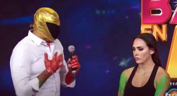 Tinieblas Jr. de manera irrespetuosa, sorprendió a la participante dándole una nalgada cuando, supuestamente, se le había olvidado la coreografía.