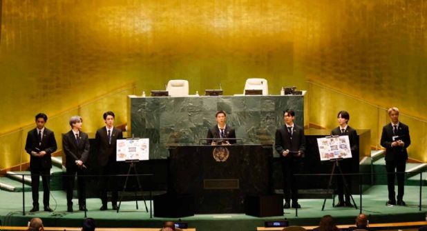Como embajadores de Corea del Sur, su presentación en la sede central de l ONU tuvo como finalidad motivar la ayuda para movilizar a los jóvenes hacie los Objetivos Mundiales.