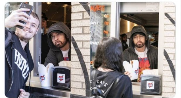 De rapear a atender en la ventanilla de un restaurante de comida rápida es la nueva vida del famoso Eminem, ya que el estadounidense ayer, abrió su nuevo negocio llamado “Mom's Spaghetti”, en su natal Detroit.