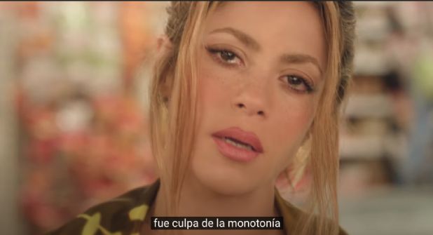 En los primeros segundos del videoclip se ve a Shakira paseando, desganada, por los pasillos de un supermercado. De fondo suena Te Felicito, su venganza musical para Piqué, una prueba de que ambas canciones tienen un punto muy importante en común: el destinatario de la letra. Monotonía también habla de su matrimonio con el futbolista.