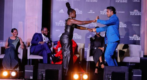 El divertido intercambio entre el mexicano y la actriz keniana-mexicana deleitó a los fanáticos que se encontraban en la Plaza Satélite en Naucalpan de Juárez, Estado de México, donde se realizó el evento para estrenar la segunda parte de “Black Panther”, nueva entrega de Marvel Comics.