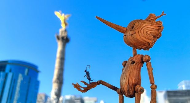 Pinocho y Sebastián, el grillo, "salieron" de tour" por la Ciudad de México y se detuvieron a tomar la foto del recuerdo en varios puntos, como el Ángel de la Independencia.