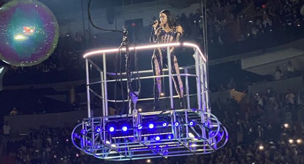 De acuerdo a la información que trascendió en las redes, la intérprete inicia el espectáculo con su tema 'Physical', mientras la artista aparecía en medio del escenario con una pantalla de fondo donde aparecía un videoclip de su rostro.