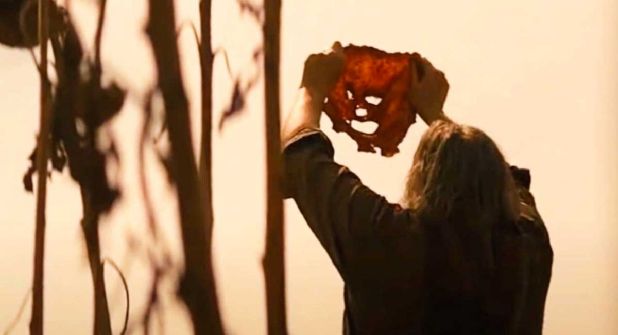 Sí, es Leatherface, ahora interpretado por Mark Burnham (silencioso pero físicamente, imponente). Es mucho mayor pero todavía tiene la motosierra; de hecho, es la motosierra original de 1974. Y está enojado. Además, Sally (Olwen Fouéré) sigue viva. Ella también está furiosa.