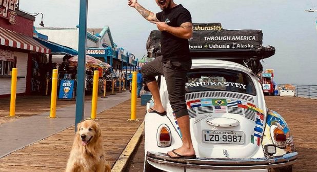 El influencer brasileño Jesse Koz, pedió la vida en un accidente cuando viajaba con su perrito de Brasil a Alaska en un vocho.