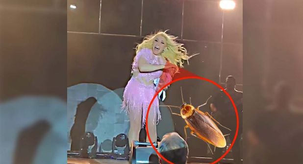 Una enorme cucaracha estaba postrada en su hombro moviéndose desesperada, aun así la cantante sabía lo que pasaba, si no que hasta que el público comenzó a gritarle "cucaracha", cientos de voces gritaban al mismo tiempo y fue así que la cantante reaccionó.