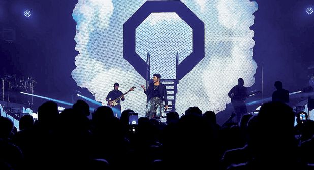 La velada comenzó al ritmo de sus temas más reciente y conforme avanzó el show los temas que lo lanzaron, comenzaron a aparecer.