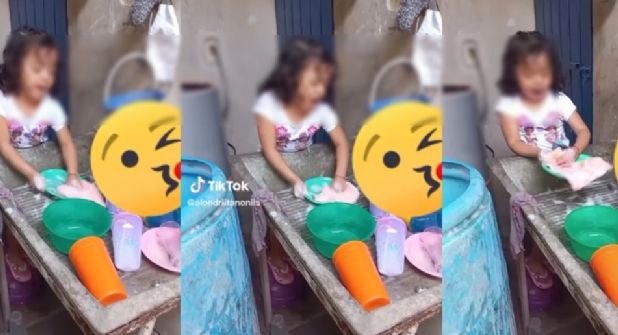 En la grabación se ve a la menor lavando los trastes, mientras escucha música y canta con mucho entusiasmo y sentimiento.