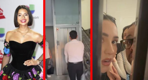 Angustiantes momentos vivió la cantante Ángela Aguilar al quedarse atrapada dentro de un elevador en España, requiriendo la ayuda de varias personas para poder salir de este claustrofóbico lugar.
