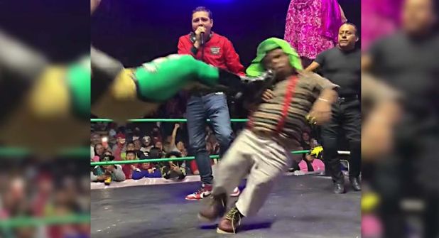 ‘Medio Metro’ debutó en la Lucha Libre de la “Arena Neza” con brutal golpiza, obviamente el pequeño bailarín no se dejó y tuvo que defenderse frente a cientos de fanáticos que rodeaban la arena, el ex compañero del ‘Sonido Pirata’ realizó una función donde fue muy bien recibido por fanáticos de la lucha que ya lo identificaron como un personaje viral.