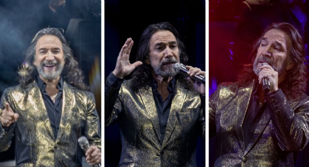 Vestido de negro, saco dorado y sombrero, Marco Antonio Solís cautivó con todo su repertorio; no hubo una sola canción que no provocara los gritos en el inmueble y no era para menos.
