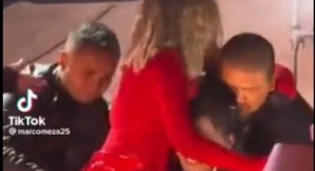 Los elementos de seguridad del lugar acudieron de inmediato, pero el hombre se aferraba a Belinda. La cantante comenzó a decirle que se relajara y este simplemente se recostó en su pecho.