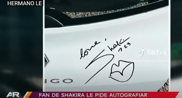 Luego el fanático le explica que solo desea el autógrafo de Shakira en la puerta trasera de su automóvil Twingo, la cual desarmó a propósito en ese momento.