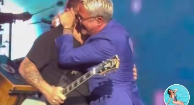 Cuando la canción terminó, el guitarrista se levantó; acto seguido, Alejandro lo abrazó fuertemente y se disculpó, para continuar con el show.