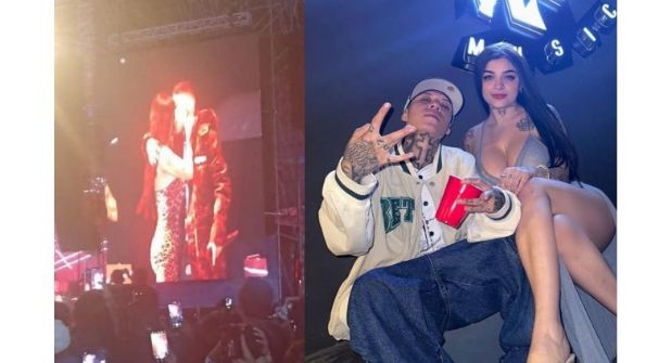 Fue este domingo cuando la modelo de OnlyFans y el cantante se unieron en un tremendo beso, ante la petición del público, dejando ver que no solo fueron labios con labios.