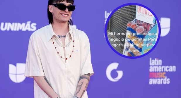 “Mi hermano poniendo su negocio de gomitas para pagar su boleto de Peso Pluma", dice un texto publicado en el video viral de TikTok.