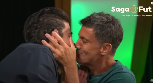 Por andar de juguetón, y haciendo lo mismo que Pedrito Sola hace unas semanas, ahora fue Jorge "El Burro" Van Rankin y Juan Carlos Gabriel de Anda se dieron "rapidín" un beso en la boca, en un programa que tienen llamado "La Saga", en internet.