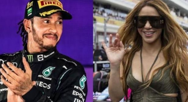 Se observa a la intérprete de 'Te felicito' acercándose a la mesa de Hamilton y se alcanza a ver al piloto sentado y voltea hacia la artista antes de que ella se acerque a su mesa.