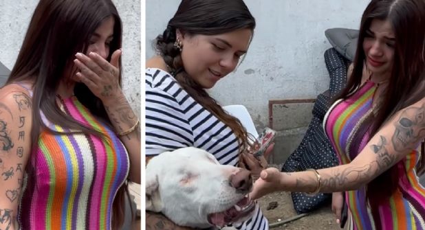 Sin embargo, hubo un momento en el que la también modelo se quebró: cuando le llevaron a un perrito que está ciego.