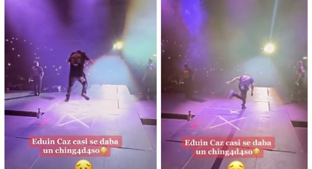El afamado artista Eduin Caz sufrió una caída en pleno concierto junto a Grupo Firme, al salir al escenario desde una plataforma e integrarse al escenario no pudo mantener el equilibrio y eso le ocasionó trastabillar y torcerse el tobillo.