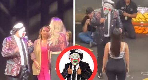 "Ya saben, mujeres: Si eres soltera, bienvenida. Si tu marido es tóxico, siéntate y cállate el hoc... Si te vale madre, aquí te espero. Si te gusta hacer el ridículo, aquí te espero. Si te quieres hacer viral, aquí te veo. Si eres bien, p.... aquí te pago. ¡Vamos a comenzar!", acto seguido, el payaso comenzó a elegir a sus "víctimas" para esa presentación.