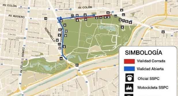 La Secretaría de Seguridad de Monterrey informó que cerrará varias calles en torno al parque y para agilizar el tráfico vehicular en la zona, se desplegará un grupo de agentes en el sector desde las 12:00 horas.