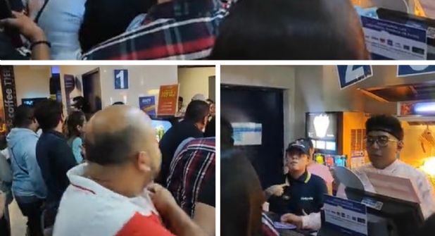 Además, se ve a una desesperada empleada de alrededor de 20 años, quien le responde a uno de los clientes del cine, que casi le dobla la edad “¡Nosotros no tenemos la culpa! ¿Por qué no piensan poquito?”, mientras se señala a la cabeza; al instante, otro hombre contesta “ustedes los revenden”.