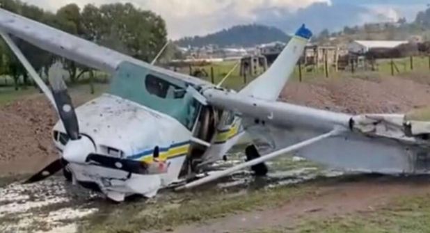 De acuerdo con las imágenes, el piloto debió maniobrar para aterrizar, con dificultad y sin aparente control.