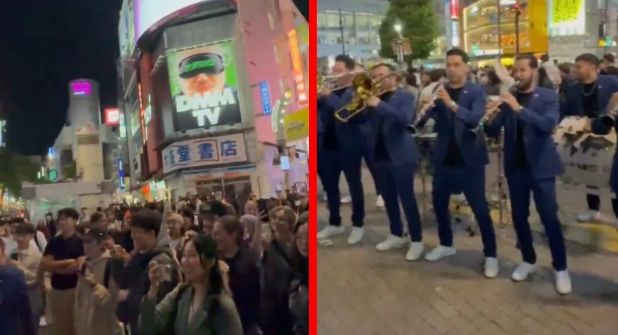 En redes sociales se compartieron varios clips donde la agrupación, liderada por Luis Alfonso Lizárraga Lizárraga, quienes presuntamente venía de un evento dado en la noche, cuando varios integrantes decidieron tocar para los japoneses sobre la calle de Shibuya.