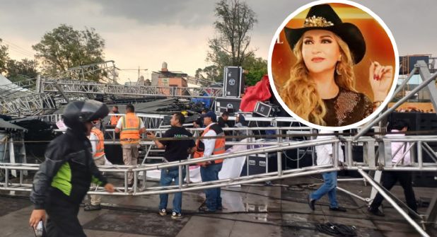 La estructura de un escenario que iba a funcionar para la presentación musical de la cantante Alicia Villarreal se vino abajo y siete personas resultaron lesionadas.