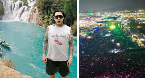 Manson arribó a la capital potosina un día antes y aprovechó para visitar parajes naturales de la Huasteca Potosina, como Micos, Puente de Dios y El Meco.