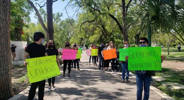 Agobiados por la falta de ingresos y las deudas, este lunes cerca de 60 estilistas realizaron una marcha y protesta pacífica a las afueras de palacio de Gobierno para pedir que se les permita regresar a sus centros de trabajo bajo las medidas de prevención necesarias.
