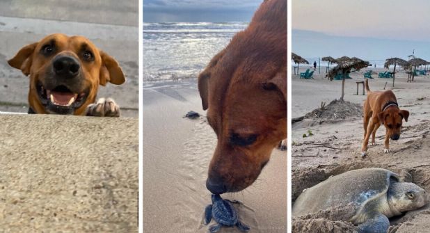 Se trata de un hermoso can que enloqueció a las redes sociales por su forma tan adorable de ayudar a las crías de las tortugas.