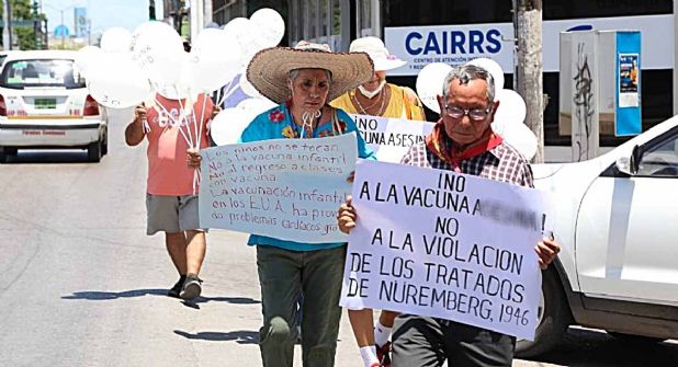 Un grupo antivacunas de ciudadanos de Tamaulipas organizó una marcha de protesta en Tampico.