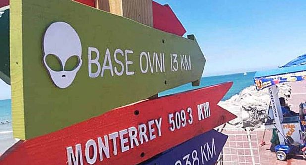 Justo en el malecón de esa playa, los establecimientos comerciales ofrecen souvenirs relacionados a seres extraterrestres y los murales y figuras con forma de marcianos adornan cada uno de los negocios le han dado un ambiente "ufológico" a la zona.
