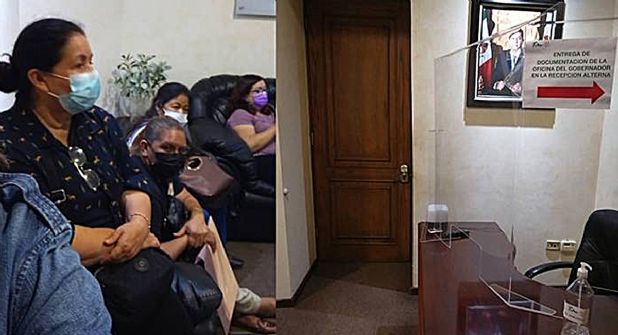 “Cuando nosotros entramos a la oficina sabíamos que no estaba pero que sí están los funcionarios encargados de atender a las personas aquí en el Palacio de Gobierno y nadie nos quiso atender, los policías no nos querían dejar pasar”.