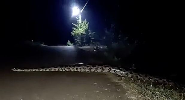 El hombre dejó que el animal cruzara sin tratar de interferir en su trayecto, impactado por la longitud del reptil, que se calcula en varios metros de la cabeza a la punta de la cola.