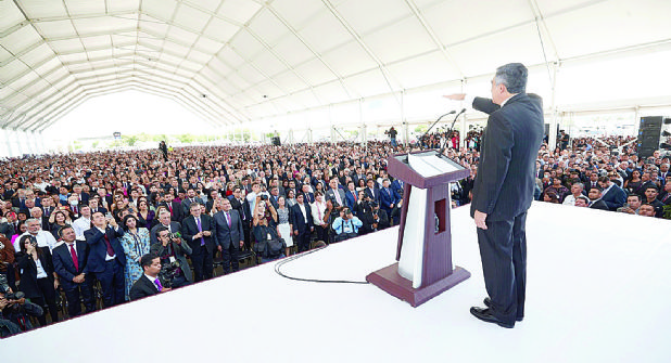 Poco después del mediodía se dirigió al Recinto Ferial de Ciudad Victoria, donde ya le esperaba una multitud de miles de simpatizantes, así como más de 20 gobernadores, e invitados especiales como el secretario de Relaciones Exteriores, Marcelo Ebrard, y la jefa de Gobierno de la Ciudad de México, Claudia Sheinbaum, entre otros personajes de primer nivel, ante quienes aseguró que se pondría fin al saqueo y corrupción que prevalecieron en los últimos sexenios en Tamaulipas.