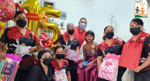 La hermosa festejada padece cáncer y es paciente del hospital. Su permanencia dentro del hospital no fue impedimento para que entre todos se organizaran y festejaran juntos la fiesta de la adolescente.