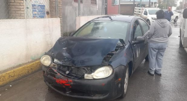 Los accidentes durante la lluvia son peligrosamente comunes. Así lo vivió un conductor de un viejo Dodge Neón que circulaba por la calle Venezuela y en Amado Nervo, el semáforo le cambió a luz roja y por no poder frenar, se estrelló contra el costado de una camioneta Chevrolet S-10.