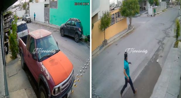 Al llegar al crucero de la calle mencionada y Tiziano, el hombre y la fémina no quedan visibles, sin embargo, segundos después aparece el sujeto, quien presuntamente intentó sustraer al menor de la carriola y al no conseguirlo, se le ve huir corriendo.