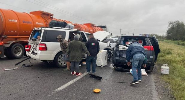 Apenas hace unas horas, en la carretera a San Fernando, que en estos momentos se encuentra mojada y resbaladiza, se registró un accidente múltiple a la altura del Kilómetro 4 de la Carretera Federal 97.