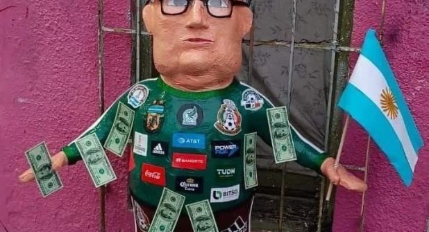 La Piñatería Ramírez no tardó mucho en sacar a la venta la piñata del entrenador argentino para que los tamaulipecos, aficionados al futbol, descarguen en él su coraje por la eliminación.