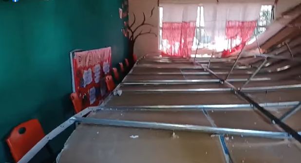 Un grupo de alumnos de quinto año de primaria vivió momentos de angustia cuando estuvieron a segundos de ser aplastados por el techo de un su salón de clases, pero gracias a la rápida acción de su profesora, todos los alumnos lograron salir ilesos.
