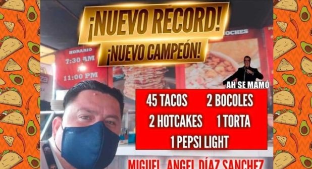 Honor a quien honor merece, un tamaulipeco se come se come 45 tacos, 2 hot cakes y una torta. ¿Quién romperá ese récord.