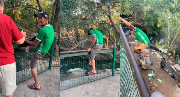 El clip muestra el momento en el que el sujeto puso en riesgo su vida al saltar el cerco de seguridad para introducirse a la zona protegida donde se encuentran estos reptiles y patearlos, provocando que dos de ellos se defendieran, lanzando mordidas.